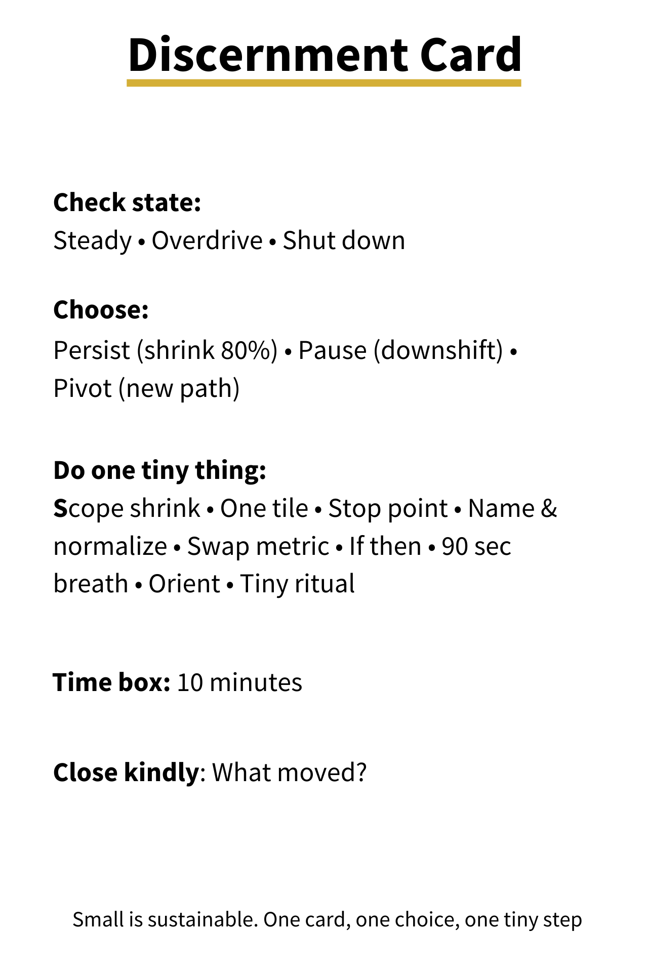 When effort needs wisdom, not volume… this card guides your state → choice → one doable action.